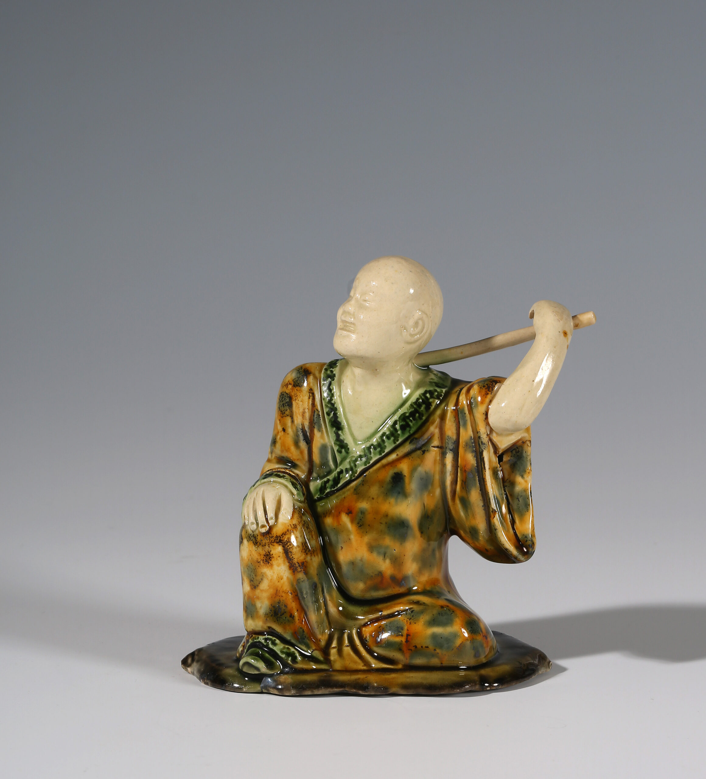 The Staffordshire figure could have been copied from a Chinese soapstone figure of the sort that were imported into Europe in large numbers[i], but it is perhaps more likely that is copies a hardwood or ivory model; the thin stick suggests one of these materials.