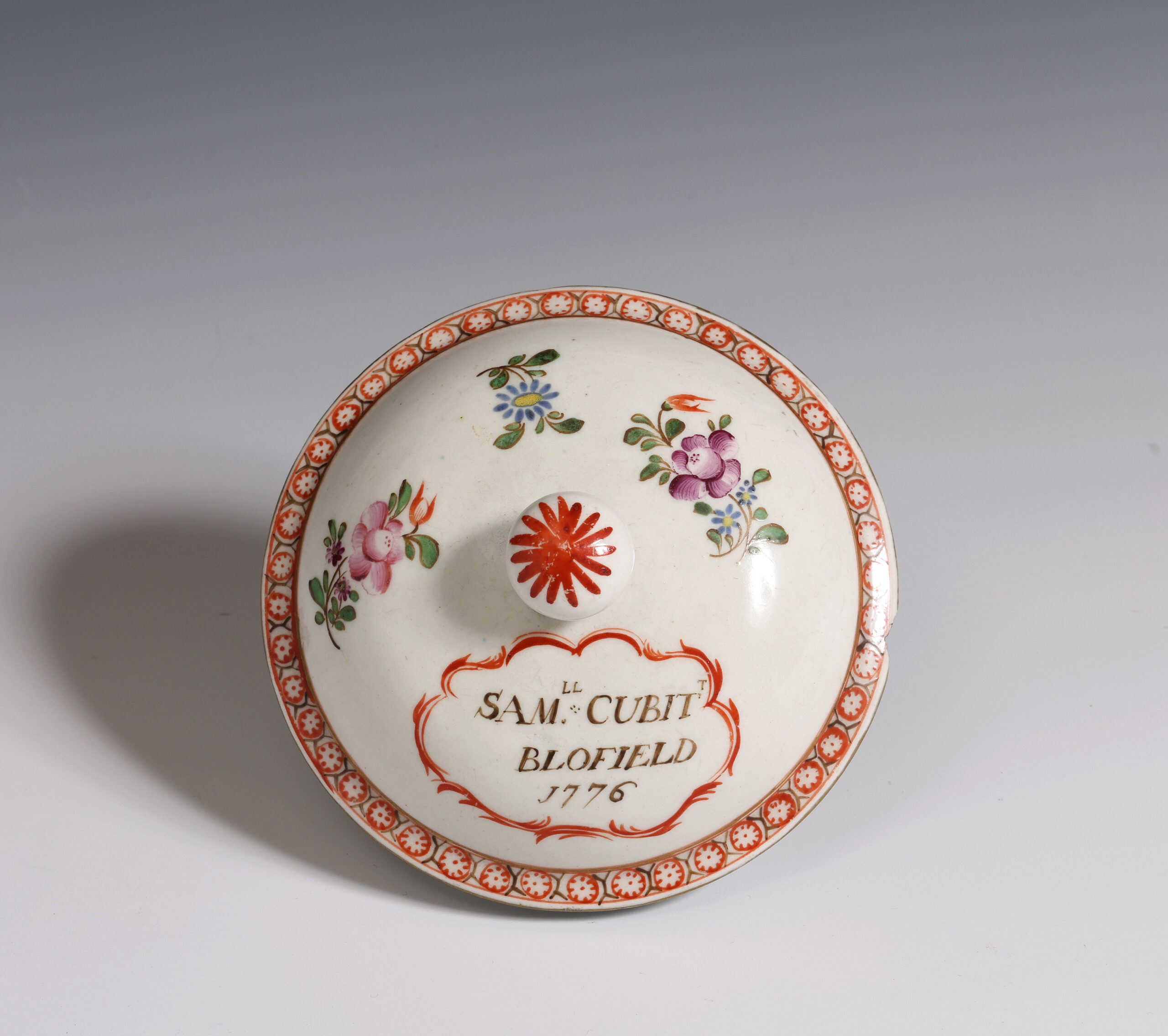 Isolated as it was, on the easternmost part of Britain in Suffolk, the Lowestoft factory produced some of the most distinctive and characterful English porcelains. Unlike other English factories, much was made as special commissions for local customers. Blofield is a Village in Norfolk about 24 miles from Lowestoft. A Samuel Cubitt is recorded as a ‘Groom’ in a parish register in Blofield on 1st June,1773.[i]