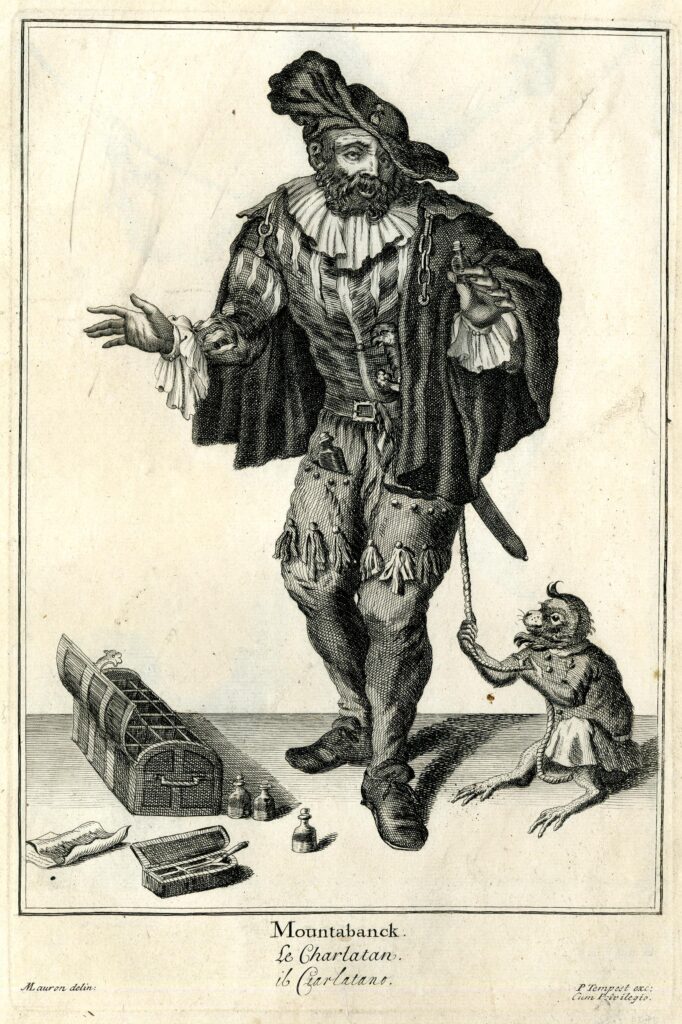 The ‘Montabanck’ or Charlatan, engraved by Marcellus Laroon, circa 1688