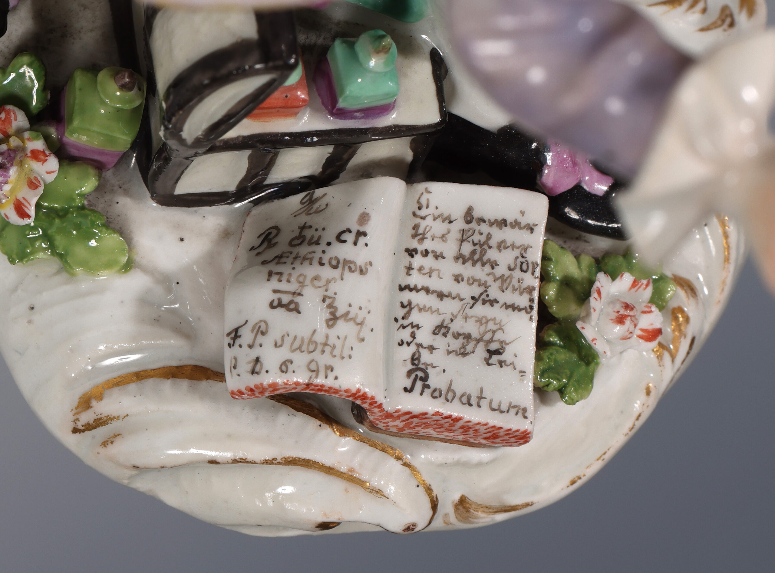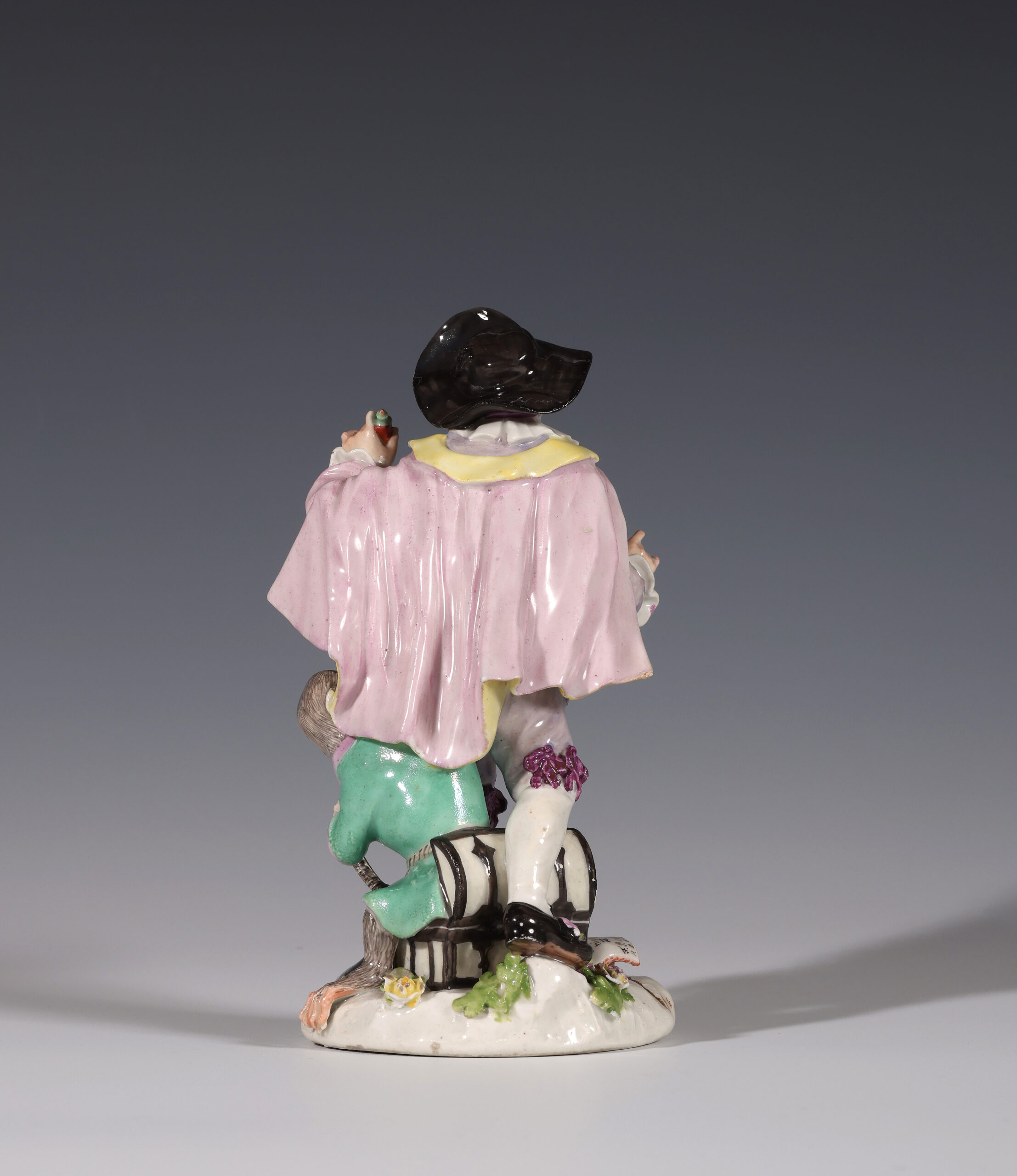 Vanessa Sigalas analyses the series in All Walks of Life: A Journey with The Alan Shimmerman Collection and illustrates the Laroon engraving that survives in the Meissen manufactory archive which is inscribed the model number 2018 and the cost of moulding it.[ii] Sigalas notes that there is no surviving record of who modelled the series in the Meissen archives but that they are generally attributed to J. J. Kaendler and P. Peinicke. This was a favourite figure of the dealer and author Yvonne Adams, who used it on the front cover of her book, Meissen Portrait Figures.
