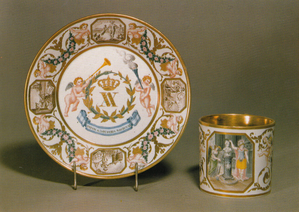 Apart from these experiments in the eighteenth century it was only in the early nineteenth century that Portuguese porcelain was made commercially. A businessman, Jose Ferreira Pinto Basto (1774-1839), realised there was a local demand for tableware and obtained a licence on July 1st 1824, which allowed him activities in four categories: earthenware, porcelain, glassware and chemical processes. He bought the property of Vista Alegre da Hermida and built his factory opposite the manor. A pale stoneware was made at first until clay containing kaolin was found.